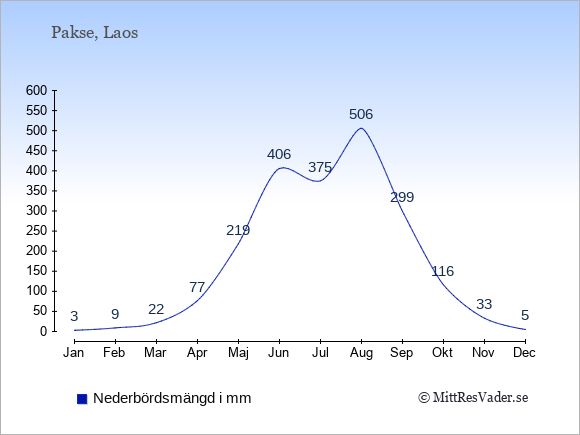 För att se hur vädret i Pakse skiljer sig från vädret hemma, kan du också jämföra siffrorna måned för måned med motsvarande siffror för Sverige under samma period här: Pakses klimat.