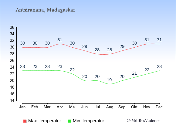 Klimatdata för Antsiranana, Madagaskar
