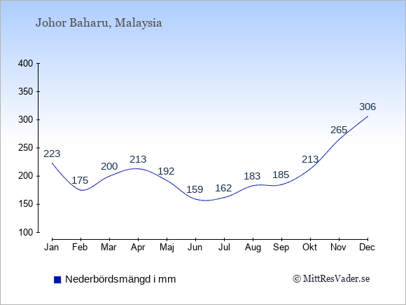För att se hur vädret i Johor Baharu skiljer sig från vädret hemma, kan du också jämföra siffrorna måned för måned med motsvarande siffror för Sverige under samma period här: Johor Baharus klimat.