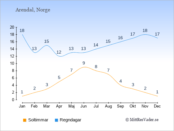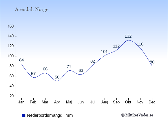 Klimatdata för Arendal, Norge