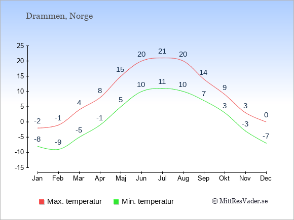 Vädret i EuropaKlimatdata för Norge Klimatdata för Drammen
