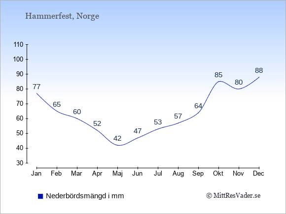Klimatdata för Hammerfest, Norge
