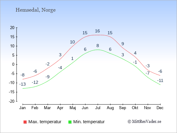 Vädret i EuropaKlimatdata för Norge Klimatdata för Hemsedal