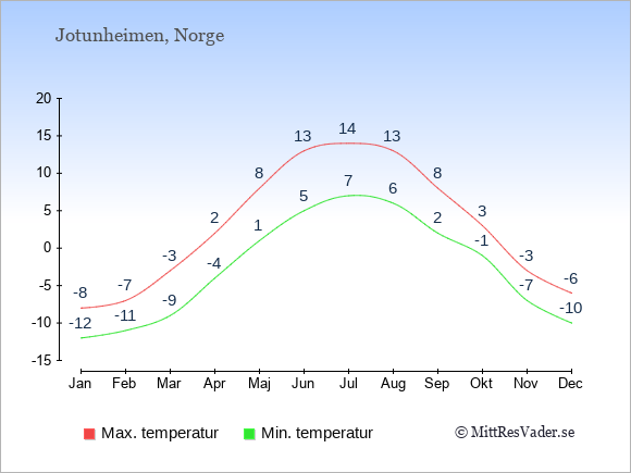 Vädret i EuropaKlimatdata för Norge Klimatdata för Jotunheimen