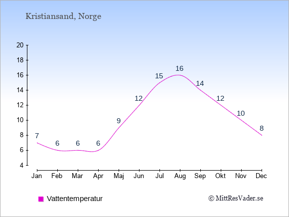 Om du vill veta hur vädret kommer att bli de kommande dagarna, kan du också se en väderprognos för Kristiansand med den aktuella vattentemperatur just nu under: Väder Kristiansand.