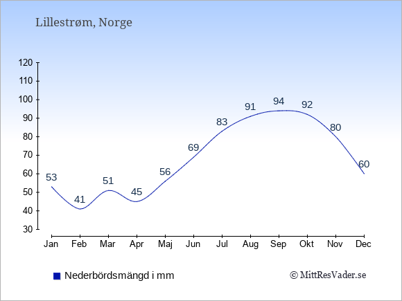 Se även vädret i Lillestrøm året runt uten klimatuppgifter för Stockholm.