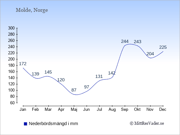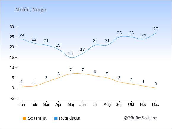 Se även vädret i Molde året runt uten klimatuppgifter för Stockholm.