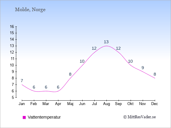 Om du vill veta hur vädret kommer att bli de kommande dagarna, kan du också se en väderprognos för Molde med den aktuella vattentemperatur just nu under: Väder Molde.