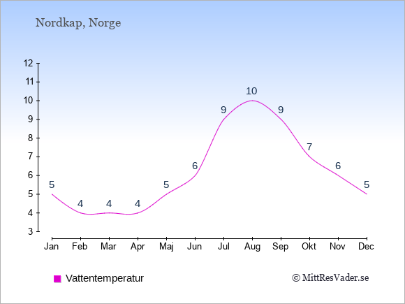Klimatdata för Nordkap, Norge