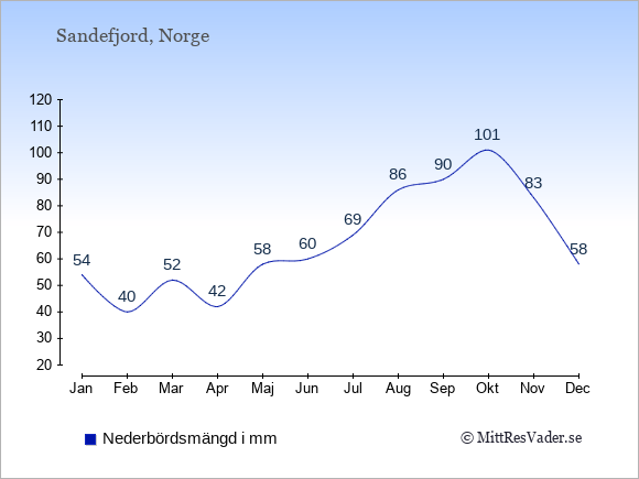 Klimatdata för Sandefjord, Norge