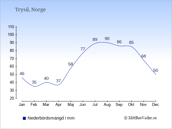 Klimatdata för Trysil, Norge