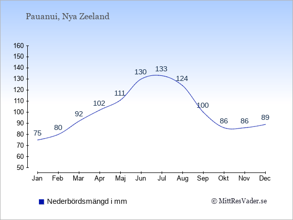 För att se hur vädret i Pauanui skiljer sig från vädret hemma, kan du också jämföra siffrorna måned för måned med motsvarande siffror för Sverige under samma period här: Pauanuis klimat.