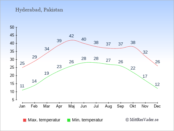 Genomsnittligt väder i Hyderabad, Pakistan
