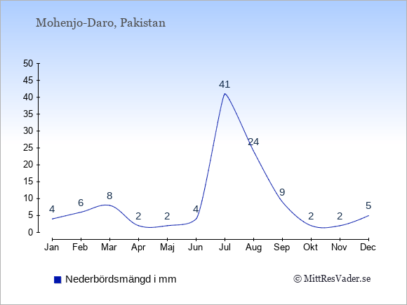 För att se hur vädret i Mohenjo-Daro skiljer sig från vädret hemma, kan du också jämföra siffrorna måned för måned med motsvarande siffror för Sverige under samma period här: Mohenjo-Daros klimat.
