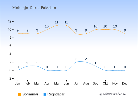Väder i Mohenjo-Daro: Soltimmar och regndagar