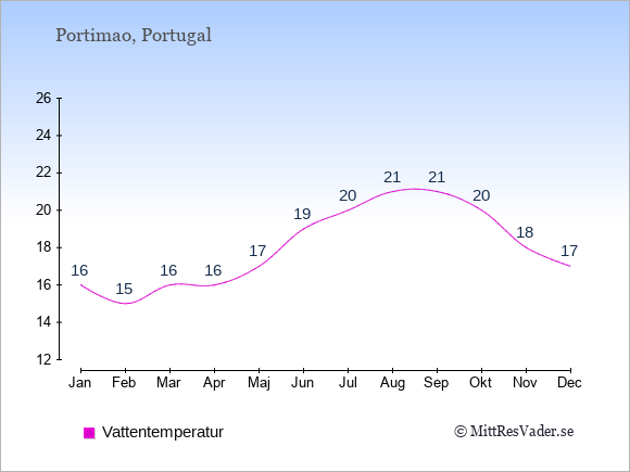 För att se hur vädret i Portimao skiljer sig från vädret hemma, kan du också jämföra siffrorna måned för måned med motsvarande siffror för Sverige under samma period här: Portimaos klimat.