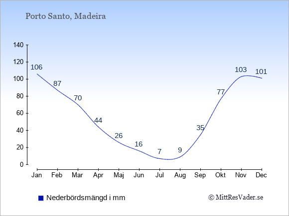 För att se hur vädret på Porto Santo skiljer sig från vädret hemma, kan du också jämföra siffrorna måned för måned med motsvarande siffror för Sverige under samma period här: Porto Santos klimat.