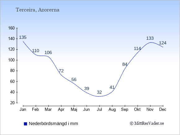 För att se hur vädret på Terceira skiljer sig från vädret hemma, kan du också jämföra siffrorna måned för måned med motsvarande siffror för Sverige under samma period här: Terceiras klimat.