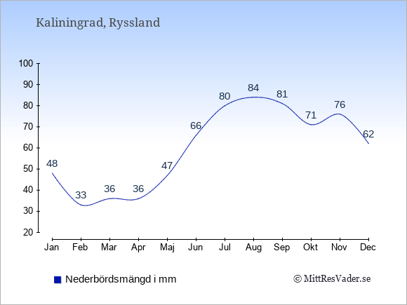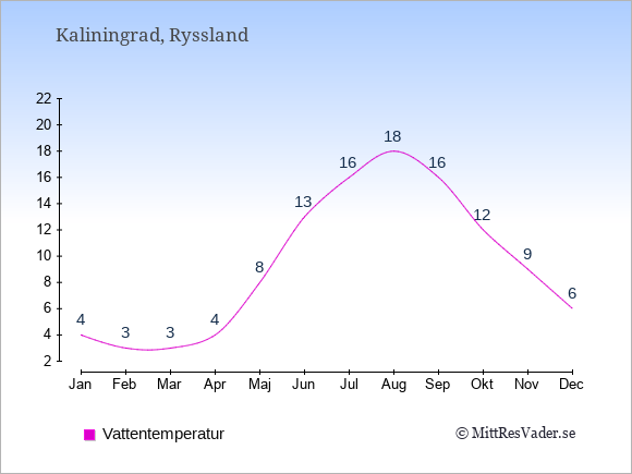 För att se hur vädret i Kaliningrad skiljer sig från vädret hemma, kan du också jämföra siffrorna måned för måned med motsvarande siffror för Sverige under samma period här: Kaliningrads klimat.