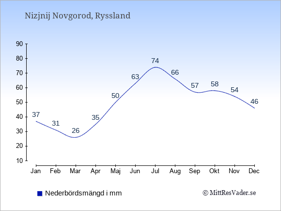 För att se hur vädret i Nizjnij Novgorod skiljer sig från vädret hemma, kan du också jämföra siffrorna måned för måned med motsvarande siffror för Sverige under samma period här: Nizjnij Novgorods klimat.
