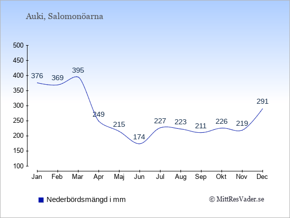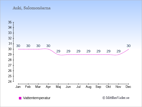 För att se hur vädret i Auki skiljer sig från vädret hemma, kan du också jämföra siffrorna måned för måned med motsvarande siffror för Sverige under samma period här: Aukis klimat.