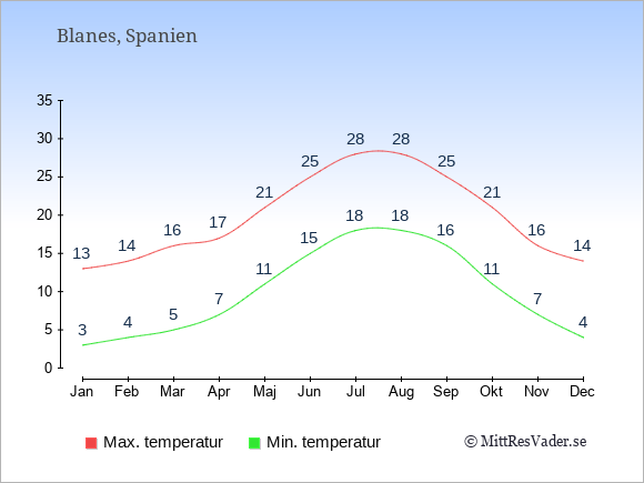Blanes: Klimat och historiskt väderJämfört med Sverige