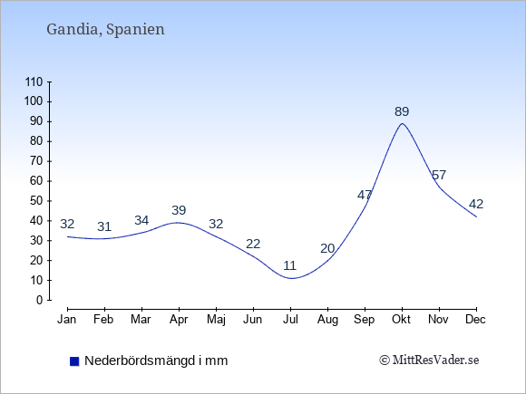 Se även vädret i Gandia året runt uten klimatuppgifter för Stockholm.