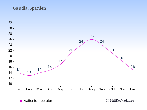 Klimatdata för Gandia, Spanien