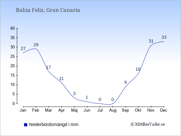 Genomsnittligt väder i Bahia Feliz, Gran Canaria