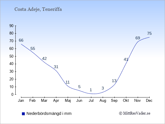 Vädret i Costa Adeje är oftast bäst i de månader där det finns många soltimmar och få dagars nederbörd.