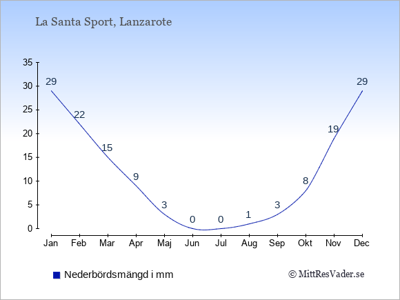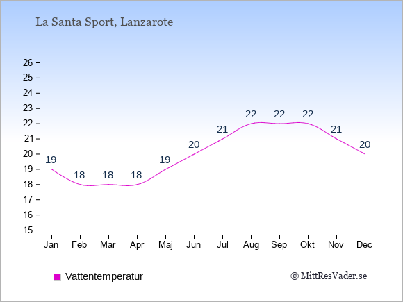Få en överblick över vädret i La Santa Sport månad för månad med temperaturer, vattentemperatur, soltimmar och nederbörd.