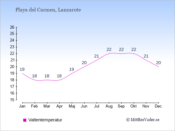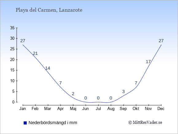 Genomsnittligt väder i Playa del Carmen, Lanzarote