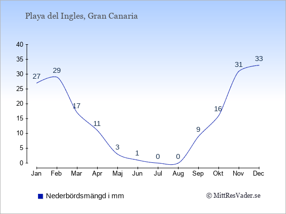 För att se hur vädret i Playa del Ingles skiljer sig från vädret hemma, kan du också jämföra siffrorna måned för måned med motsvarande siffror för Sverige under samma period här: Playa del Ingles klimat.