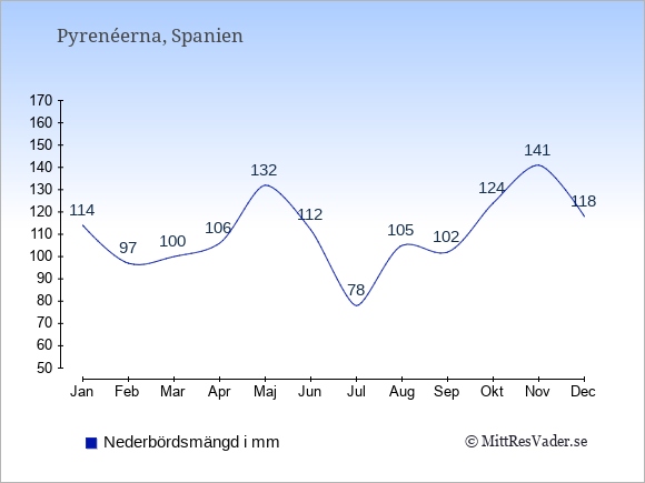 Genomsnittligt väder i Pyrenéerna, Spanien