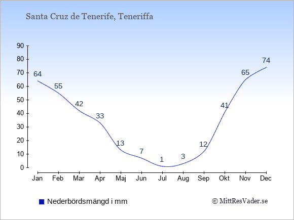 För att se hur vädret i Santa Cruz de Tenerife skiljer sig från vädret hemma, kan du också jämföra siffrorna måned för måned med motsvarande siffror för Sverige under samma period här: Santa Cruz de Tenerifes klimat.
