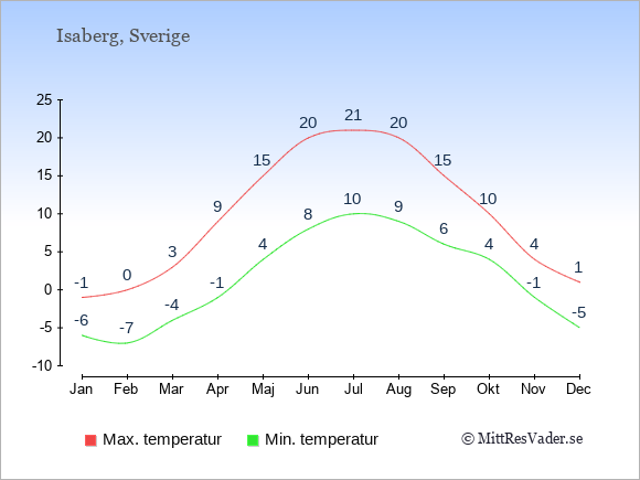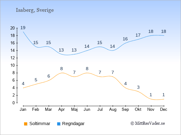 Se klimatdata för Isaberg jämfört med klimatet i Stockholm.