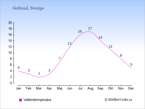 Få en överblick över vädret på Gotland månad för månad med temperaturer, vattentemperatur, soltimmar och nederbörd.