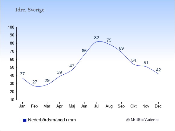 För att se hur vädret i Idre skiljer sig från vädret i Stockholm, kan du också jämföra siffrorna måned för måned med motsvarande siffror för Stockholm under samma period här: Idres klimat.