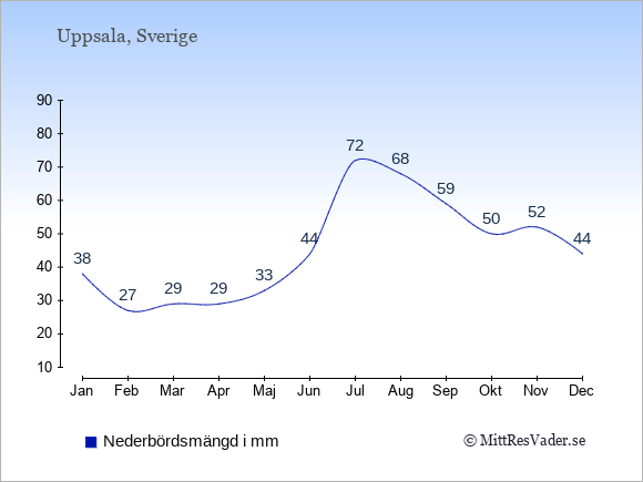 För att se hur vädret i Uppsala skiljer sig från vädret i Stockholm, kan du också jämföra siffrorna måned för måned med motsvarande siffror för Stockholm under samma period här: Uppsalas klimat.