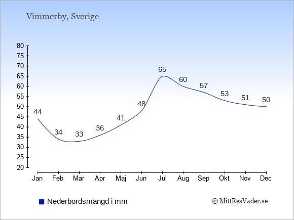 För att se hur vädret i Vimmerby skiljer sig från vädret i Stockholm, kan du också jämföra siffrorna måned för måned med motsvarande siffror för Stockholm under samma period här: Vimmerbys klimat.