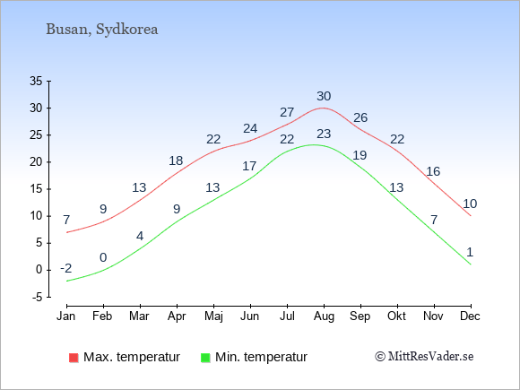 Klimatdata för Busan, Sydkorea