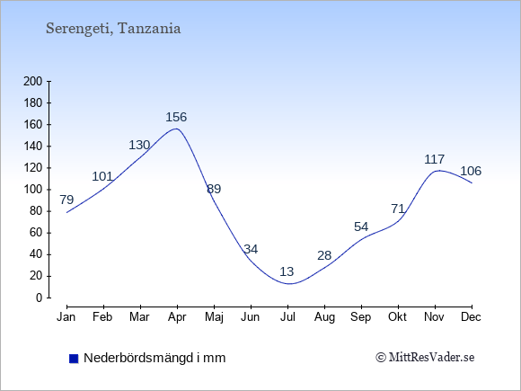 Genomsnittligt väder i Serengeti, Tanzania
