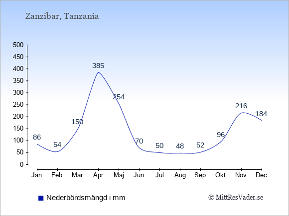 För att se hur vädret i Zanzibar skiljer sig från vädret hemma, kan du också jämföra siffrorna måned för måned med motsvarande siffror för Sverige under samma period här: Zanzibars klimat.