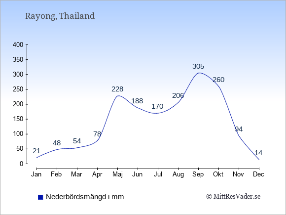 För att se hur vädret i Rayong skiljer sig från vädret hemma, kan du också jämföra siffrorna måned för måned med motsvarande siffror för Sverige under samma period här: Rayongs klimat.