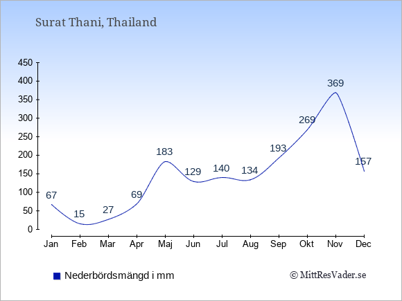 Vädret i Surat Thani är oftast bäst i de månader där det finns många soltimmar och få dagars nederbörd.