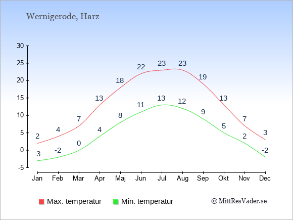 Se klimatdata för Wernigerode jämfört med klimatet i Sverige.