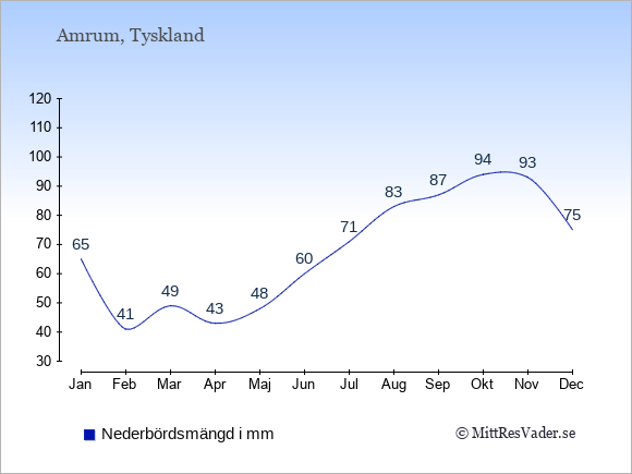 För att se hur vädret på Amrum skiljer sig från vädret hemma, kan du också jämföra siffrorna måned för måned med motsvarande siffror för Sverige under samma period här: Amrums klimat.