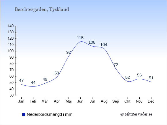 Genomsnittligt väder i Berchtesgaden, Tyskland