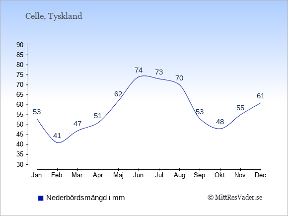 För att se hur vädret i Celle skiljer sig från vädret hemma, kan du också jämföra siffrorna måned för måned med motsvarande siffror för Sverige under samma period här: Celles klimat.