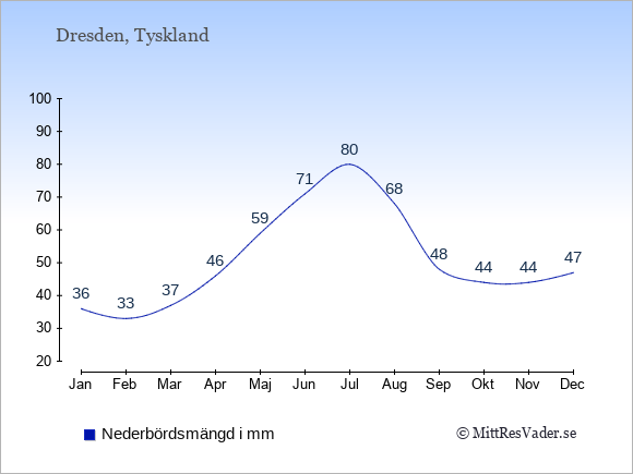För att se hur vädret i Dresden skiljer sig från vädret hemma, kan du också jämföra siffrorna måned för måned med motsvarande siffror för Sverige under samma period här: Dresdens klimat.